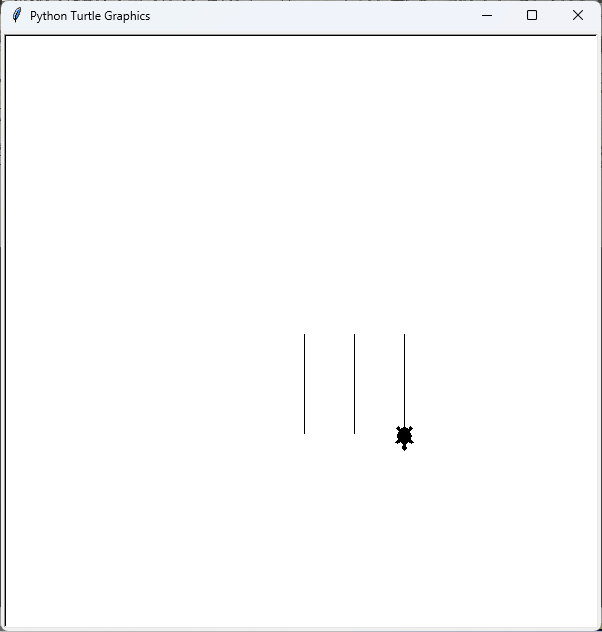 t.up() # 펜 들기. 이동시 그려지지 않도록 함