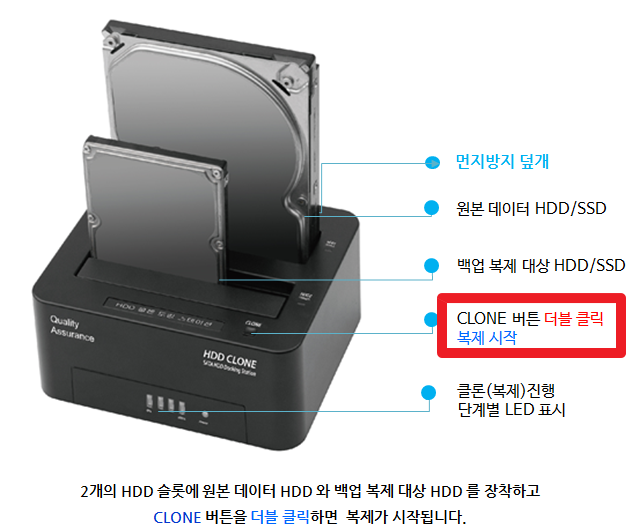 전원만 연결하고 원본, 복제할 HDD를 끼워주고 작업할 수 있습니다.