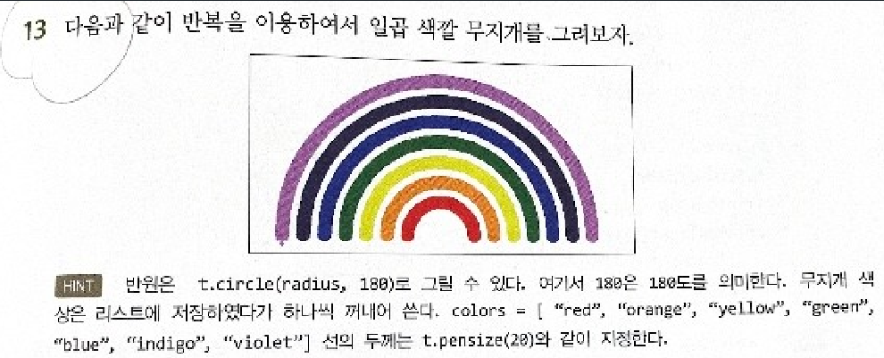 colors = ['red','orange','yellow','green','blue','indigo','violet'] # 무지개 색 리스트