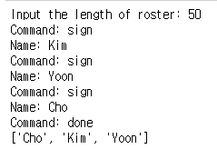 n = int(input('Input the length of roster: ')) # 입력 받기. 정수 변환
