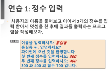 n1 = input('첫 번째 정수를 입력하시오: ') # input으로 입력 받아서 n1 변수에 받기