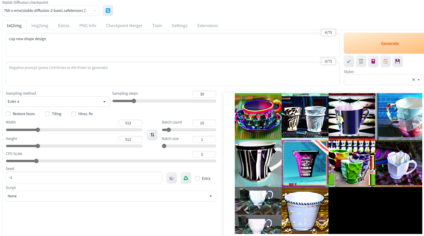 Batch count에 10을 입력해서 Generate 합니다.