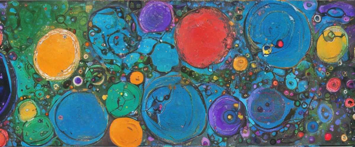 | Wassily Kandinsky, masterpiece, best quality, acrylic pour art, colorful, orange, blue, green line, gold bubbles, swipes pouring, from left to right, very small gold bubbles, rainbow swipes, rolling swipe, black outline, twist, huge, (large magenta bubbles), black small bubble left top, black line Steps: 30, Sampler: DPM++ SDE Karras, CFG scale: 2.5, Seed: 3229466157, Face restoration: CodeFormer, Size: 1200x500, Model hash: bfcaf07557, Model: 768-v-ema(stable-diffusion-2-base) |