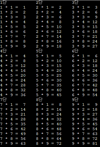 for(int j=1; j <= 9; j++) //공백 찍기
