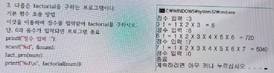 int factorial(int n) // 팩토리얼 결과 함수