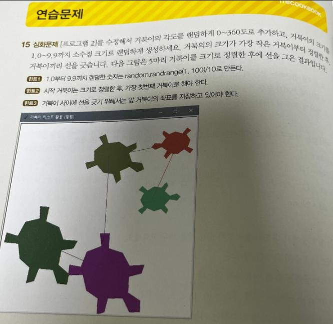 | [파이썬] 문제 : 터틀(turtle) 텍스트 T=삼각형, R=사각형 입력받아 그리기 (1) | 2023.05.05 |
