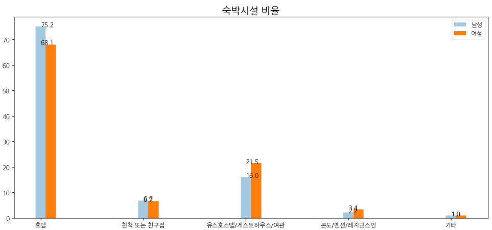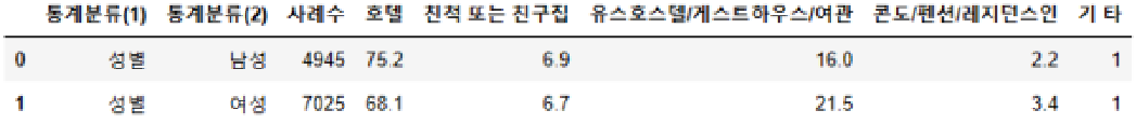 # df2 = df[['호텔','친척 또는 친구집','유스호스텔/게스트하우스/여관','콘도/펜션/레지던스인','기타']]