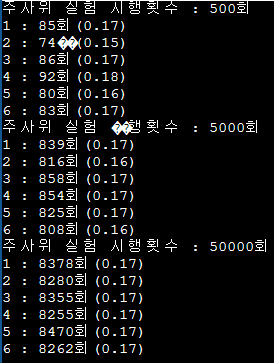 for(int i=0;i<6;i++){ //1~6 각 수에 대한 빈도 및 확률률