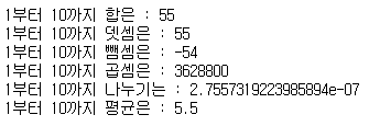2. 입력값의 평균, 합, 곱, 뺄셈, 덧셈에 대한 함수를 포함시킨다.
