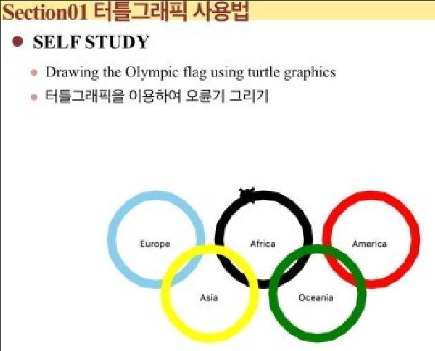 | [파이썬] 문제 : 터틀(turtle) 5개의 줄어드는 원 그리기 및 달팽이 모양 회전하기 (0) | 2023.05.17 |
