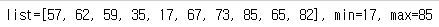 print(f"list={lst}, min={func_min(lst)}, max={func_max(lst)}")