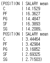 Tb = nba.where("SALARY", are.above(S)).group('POSITION', sum)