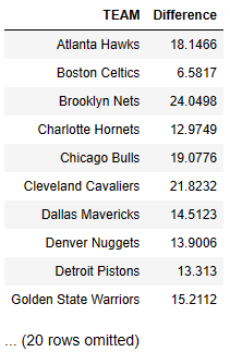 team_diff = nba.groups(["TEAM"], max).join('TEAM', nba.groups(["TEAM"], min))