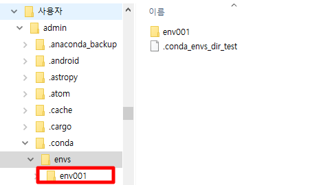 Anaconda에서 가상화를 설정하면 다음과 같은 폴더에 만들어집니다.