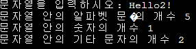 printf("문자열 안의 알파벳 문자의 개수 %d\n", num_chars);