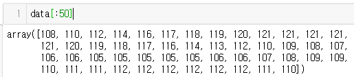 50개 요소씩 묶어서 X 학습 데이터로 만듭니다.