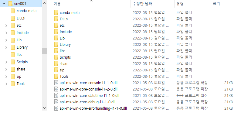 Anaconda에서 가상화를 설정하면 다음과 같은 폴더에 만들어집니다.