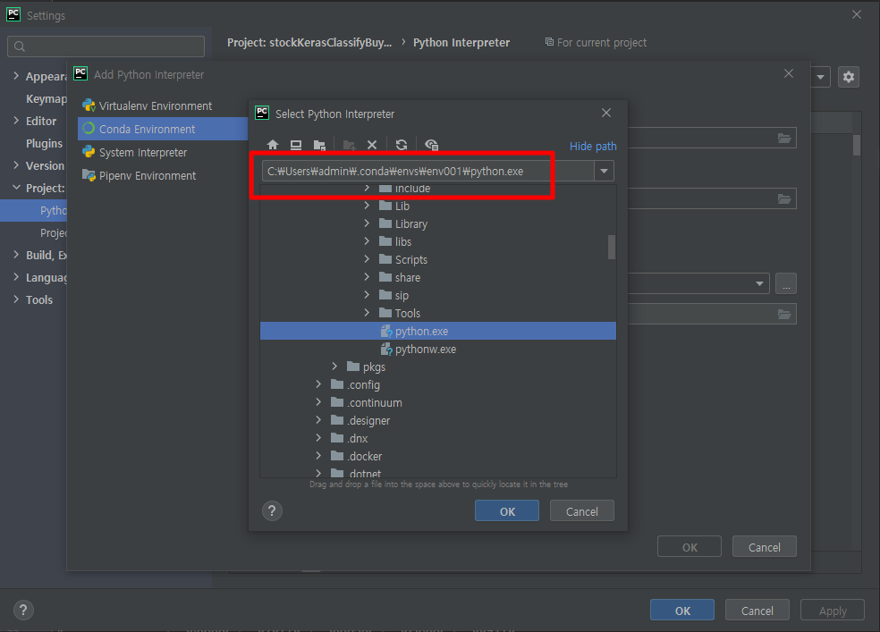 Anaconda의 가상 환경 폴더를 입력합니다.
