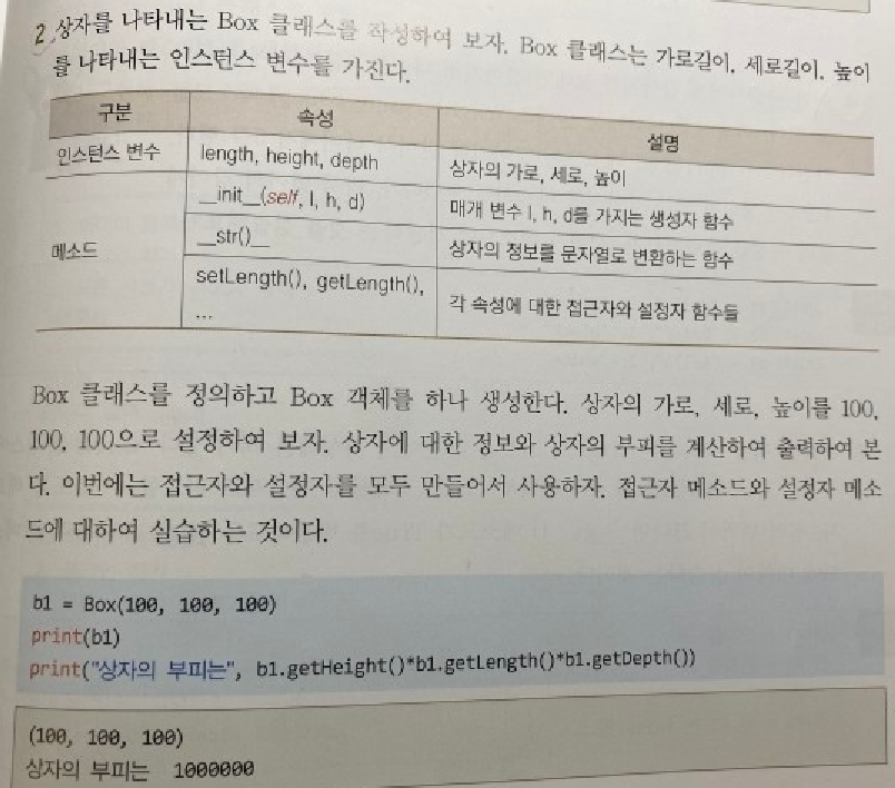 print('상자의 부피는',b1.getLength() * b1.getHeight() * b1.getDepth())