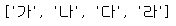 lst = [['가', '나', '다', '라'], ['마', '바', '사', '아']] # 위 문제에서 나온 결과 리스트