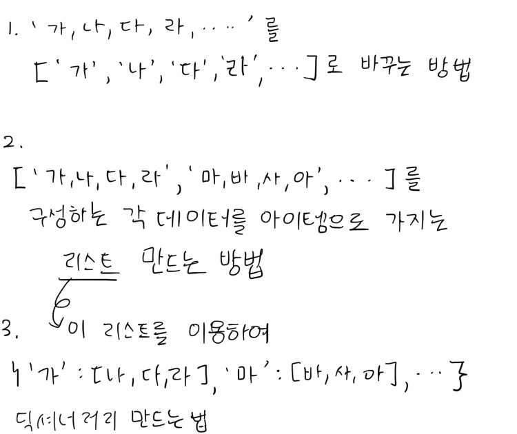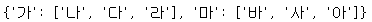 key = lst[i][0] # 해당 인덱스 번호의 lst 요소 중 첫번째 요소, 즉 ['가', '나', '다', '라'] 일때 '가'