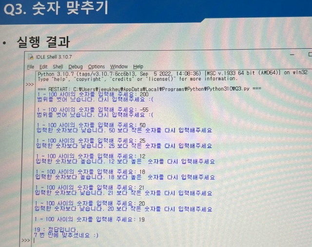 print('범위를 벗어 났습니다. 다시 입력해주세요')