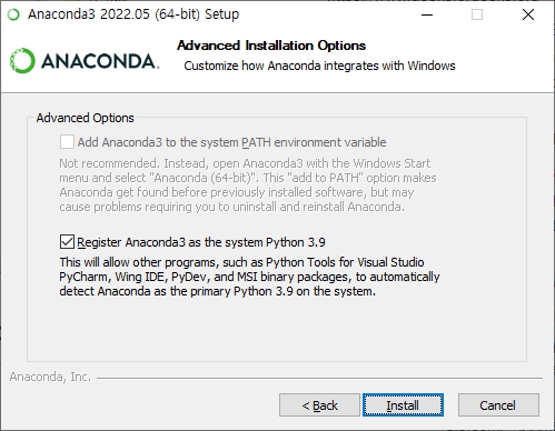'Advanced Options'가 Disable 되어 있네요. 기존에 PATH가 설정되어 있어서 그런지는 모르겠네요.