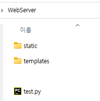웹서버 하위 폴더 'templates'에 index.html 파일이 있다.