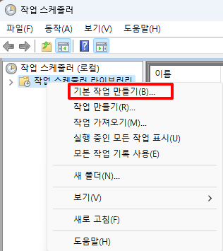 마우스오른쪽 클릭해서 '기본 작업 만들기' 선택