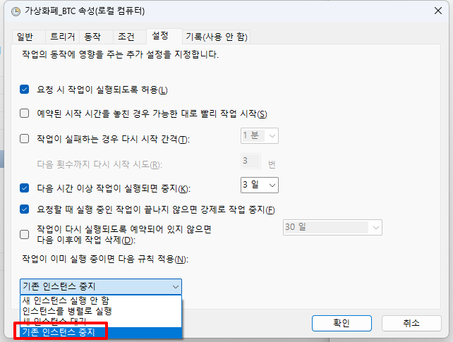 다음과 같이 실행시 기존 인스턴스를 중지하도록 옵션 설정