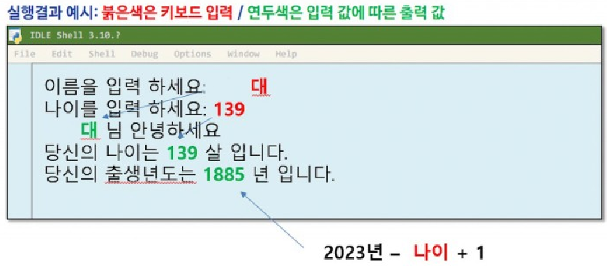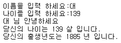 print('당신의 출생년도는',2023 - age + 1,'년 입니다.') # 정수인 age로 계산