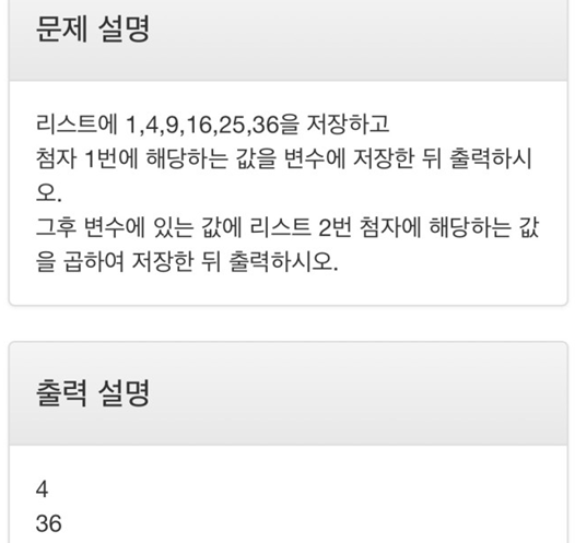 lst = [1,4,9,16,25,36] # 리스트 선언