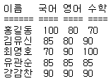 이름 국어 영어 수학