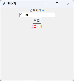 button = Button(win, text="확인", command=check) # 버튼에 실행할 함수 지정