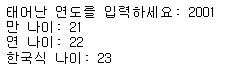 print('연 나이:',now_year - year)