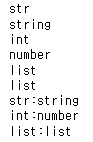 str,string,int,number,list,list