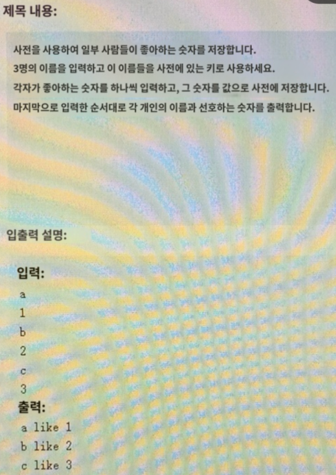 | [파이썬] 문제 : 이름,행운수 입력 받아서 딕셔너리 만들고 출력 (0) | 2023.11.30 |