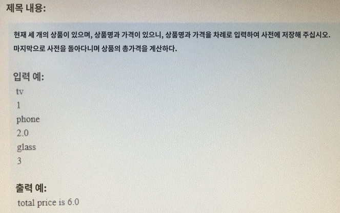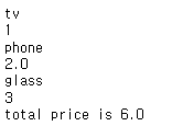 dic[last_name] = float(tmp) # 딕셔너리에 상품을 key로 해서 가격(float로 문자열을 실수로 변환) 저장