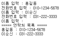 phonebook[name] = tel_no # 딕셔너리에 key를 name으로 하고 value는 tel_no로 저장
