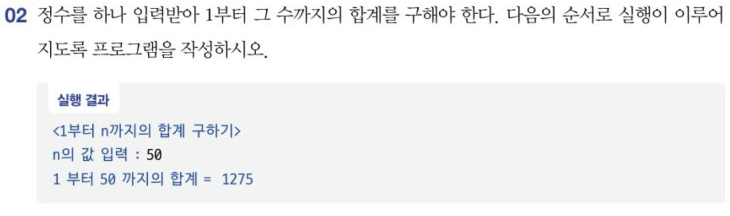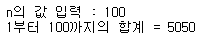 print(f"1부터 {n}까지의 합계 = {total}")728x90