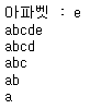 print(alpha[j],end='') # 줄바꿈하지 않고 출력