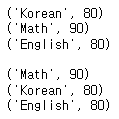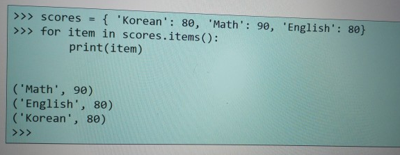 scores = {'Korean':80, 'Math':90, 'English':80}
