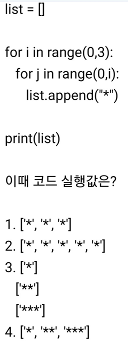 for j in range(0, i): # j는 i가 end가 됩니다. i=0일때는 동작하지 않고, 1일떄 1번, 2일때 2번 동작하게 됨